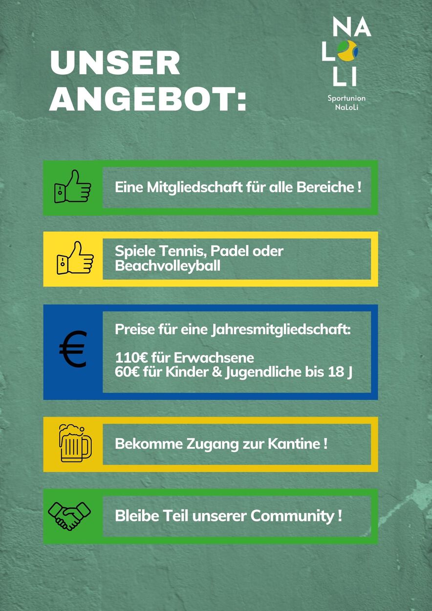 Für unsere Mitglieder gibt es die Möglichkeit die Padel-Plätze für nur 16 €/Stunde zu buchen ! Des weiteren können die Tennisplätze mit einem weiteren Vollmitglied kostenfrei genutzt werden.